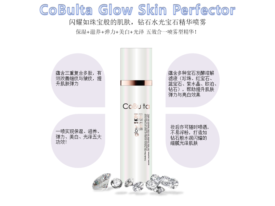 | 전성분 | 정제수, 서양장미꽃수, 부틸렌글라이콜, 메칠프로판디올, 알부틴, 변성알코올, 벤질글라이콜, 마카다미아씨오일, 카프릴릴메치콘, 프로필렌글라이콜, 글리세린, 피이지-60하이드로제네이티드캐스터오일, 슈크로오스디스테아레이트, 스쿠알란, 부톡시디글라이콜, 산양삼추출물, 마치현추출물, 디메치콘, 1,2-헥산디올, 세테아릴알코올, 토코페릴아세테이트, 포타슘세틸포스페이트, 아데노신, 라스베리케톤, 카프릴릴글라이콜, 팔미토일펜타펩타이드-4, 팔미토일펜타펩타이드-3, 아세틸헥사펩타이드-8, 디소듐이디티에이, 소듐하이알루로네이트, 비에이치티, 트리세테아레스-4포스페이트, 하이드롤라이즈드콜라겐, 포도씨오일, 레시틴, 황색5호, 황색4호, 향료, 진주추출물, 효모/오팔/진주층/터키석/다이아몬드발효용해여과물, 루비추출물, 사파이어추출물, 자수정추출물 |